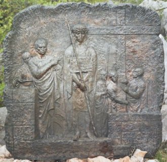 (This is the first plaque of the Sorrowful mysteries of the Rosary on Apparition Hill, and Jesus is praying for the strength to endure His Passion and death. He is thinking of all mankind, especially those who reject Him, and for whom this loving sacrifice could well be in vain. We must remember them (Our Lady calls them 'unbelievers' or 'those who do not know the love of God' ), so that they too turn for forgiveness for their sins and can be saved) - (message from Our Lady Oct.2nd 2002 -"Dear children, pray, pray, pray for those who don't feel the love of God."
